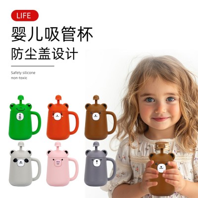 新款儿童学饮杯小动物食品级硅胶带把手防烫防摔防漏儿童吸管杯
