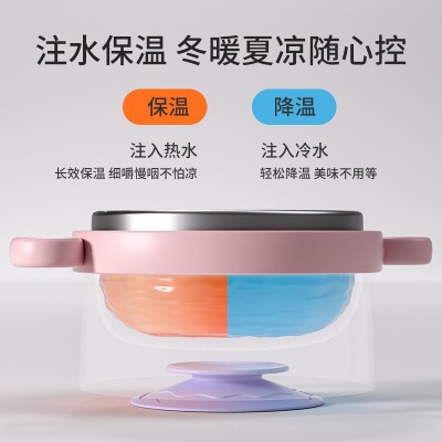 儿童注水保温碗婴儿辅食碗316不锈钢宝宝吃饭碗婴幼儿喝汤吸盘碗