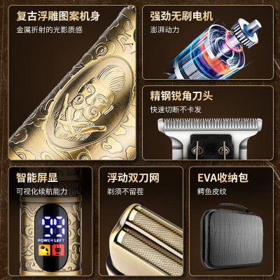 男士4合1发廊家用理发器套装专业电推剪往复式剃须刀电动鼻毛器