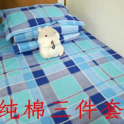 批发学校上下铺单人床上用品全棉三件套兰格子床单被罩枕套纯棉
