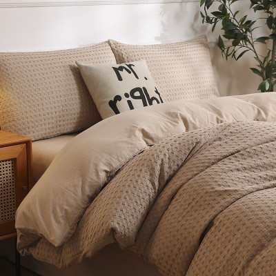 ins风纯棉四件套华夫格秋冬款简约纯色全棉无印床单被套床上用品