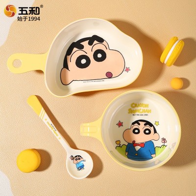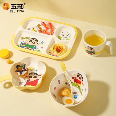 五和蜡笔小新可爱碗儿童餐具新款儿童家用宝宝饭碗汤碗分格餐盘 多功能陶瓷碗