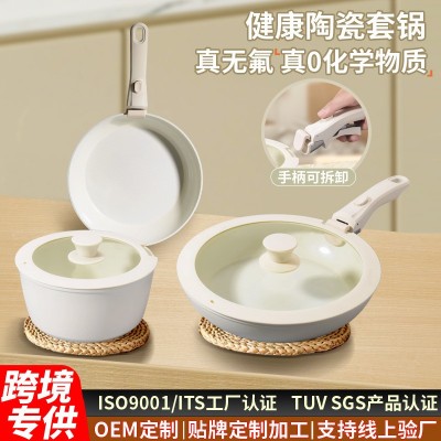 陶瓷不粘锅可拆卸手柄套装锅具煎锅汤锅家用电磁炉燃气灶专用