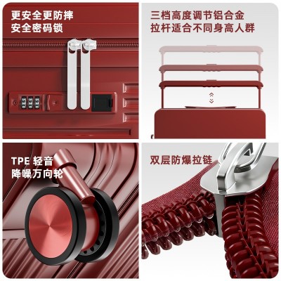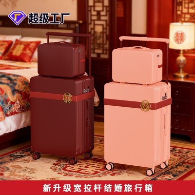 宽杆结婚箱陪嫁婚庆礼品箱子旅行拉杆箱嫁妆箱复古酒红密码行李箱 行李箱