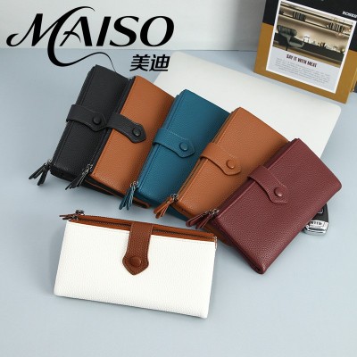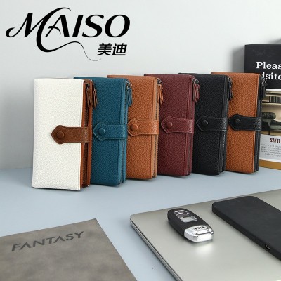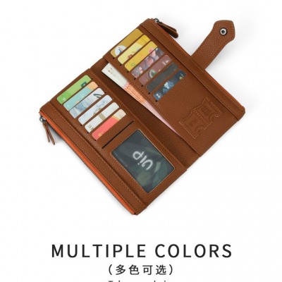 新款rfid软皮革二折长款钱包双拉链多卡位卡包手机钱包女士包袋