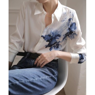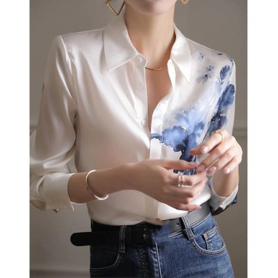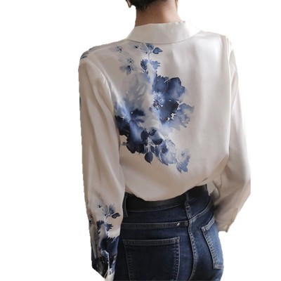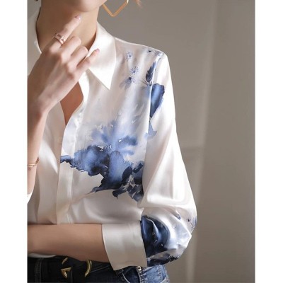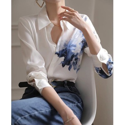 首页 > 男装 / 女装 / 内衣 > 女装 > 蕾丝/雪纺衫 > 正装雪纺衬衫女设计感国风复古水墨印花白色衬衣