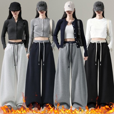 加绒加厚香蕉阔腿裤女秋冬新款垂感直筒运动裤子宽松美式休闲卫裤 秋冬休闲
