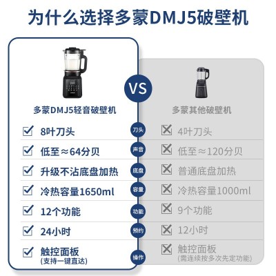 首页 > 家用电器 / 厨房电器 / 大家电 > 厨房电器 > 豆浆机 > DOMENG多蒙DMJ5破壁机家用全自动多功能轻音免虑防糊底智能豆浆机
